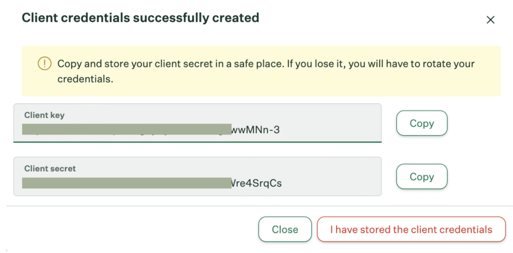 - Ensure you send across the copied Client key and Client Secret with the other information required in the Requirements section.